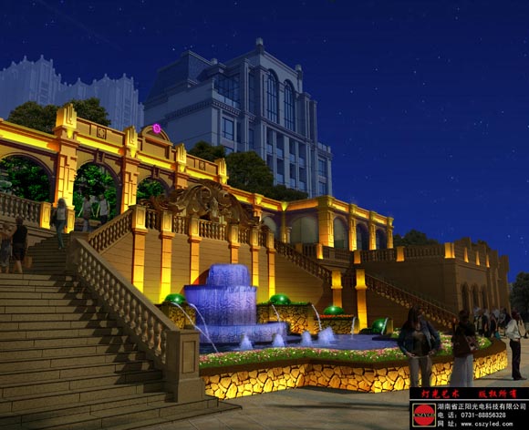 我公司在做燈光藝術設計中,采用燈光的特性,以人為本,鑄造一個“皇室貴族”的夜生活空間;重點突出建筑特色,最大限度采用見光不見燈的夜間表現形式,既能創造一個舒適的室外夜空間,又不影響建筑白天的效果,使建筑區域成為該地區的富有特色的標志性建筑。