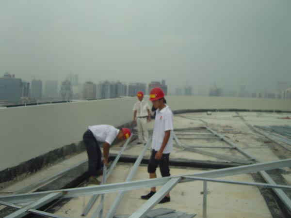 長沙人瑞瀟湘國際發光字面積比較大,因此需要一個牢固的鋼架做為支撐。