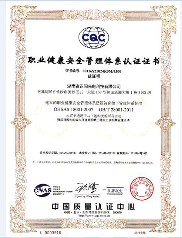 熱烈祝賀湖南正陽通過OHSAS18001職業健康安全管理體系認證[2016-06-27]